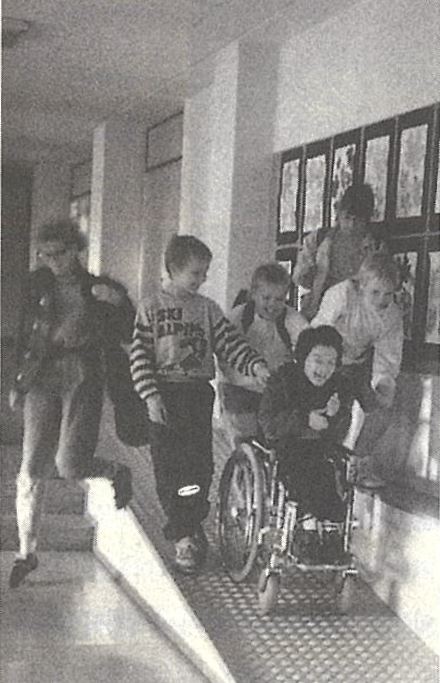 혼자서는 침대에서 일어날 수 없다. 이런 도미오 군이 일반 초등학교에 다니고 있다. 학우들은 아주 자연스럽게 그의 휠체어를 밀어주고 그와 잘 어울린다. 같은 반 아이들은 그와 사귀면서 장애를 가진 이들과 어울리는 법을 자기도 모르게 몸에 익힌 것 같다.